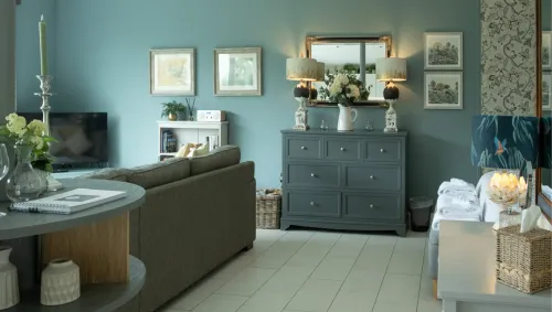 Right by the River Severn, kick back in comfort in a light and airy cabin just outside Shrewsbury, and enjoy a BBQ in the garden