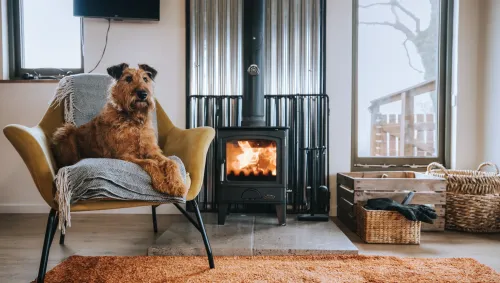 Just a 20-minute walk from the Welsh border, Hawthorn Cabin is perched on a sheep farm, looking like a daydream. Around you are tumbling valleys, tall pines – and endless walks to take the dog out to burn off some energy. Your cabin has ample room for two (plus a four-legged guest of course), and you’ll spend arrival wondering if you should enjoy a swing in the hammocks on the deck first, or just get straight to exploring. You can head straight from the cabin on a walk, led nose-first by your hound, or drive a little further afield to explore the local towns and restaurants – perhaps to pick up something to cook on the BBQ. When everyone’s done for the day, if it’s sunny, you’ll be out on deckchairs and round the firepit into the evening – or on cooler nights, snuggled by the crackling wood burner, with a snoring dog.
