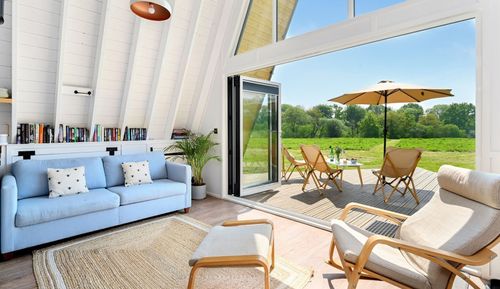 There’s something magical about an A Frame cabin and Hazel Hide has plenty of that angular sparkle. Especially when you can relax and cook on the BBQ whilst the dog runs in wild circles, enjoying the freedom and safety of the enclosed field. Right on the edge of the South Downs National Park, you are surrounded by miles and miles of walks, and with the coast in such easy reach, it’s a short drive to anything you fancy. But thankfully, it’s still easy to enjoy feeling secluded out in the countryside, with the fresh air, and just the dog for company. Eat out on the deck, with the bifold can doors open, and enjoy the views, or simply rock in the hammock in the fairer weather. Retreat indoors amongst all the well-styled hygge when the night rolls in, and share the wood burner glow with the hound.