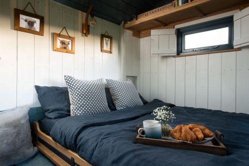 Just a couple of miles from the Anglo-Scottish border, and even less to the sea, you’re surrounded by stunning countryside, beaches and endless coastal walks. Spend a few days relaxing with your dog, taking long strolls to explore cliffside ruins, castles and stately homes nearby. You’ve got all you need to settle in at Little Lamberton, with a calming interior of blues and wood tones, a kitchen/dining space to refuel after adventures and a sofa to settle on with the dog (on a blanket) and listen to wood burner crackle. There’s also a full-size pull-down bed, and an indoor bathroom perfect to start the day fresh or wash off adventures. Outside, the space is a two and four-legged dream, with use of the whole field to run in, sniff and explore – as well as an outdoor space with deck chairs by the firepit, bean bag chairs on a covered deck next to the Gozney pizza oven, a movie projector and even a wood-fired hot tub.