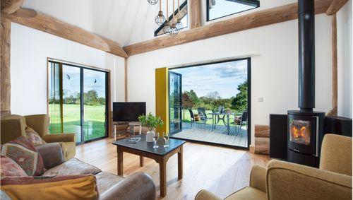 Wide open space is the theme here at North Beer Lodge. Whether you’re inside, where the lofty ceilings stretch up on their wooden struts creating a vast, light-filled space ,or if you’re outside in the sunshine in the large, enclosed garden with the dog happily trotting about. Tucked away in the folds of the farm, you’re surrounded by green, with plenty of walks straight from the front door. But if your dog’s keen on a big outing, there’s Bodmin Moor in 20 minutes, Dartmoor in 40, and the beach in just 25. When you’re not out adventuring, you and the dog can mill around in the lounge, laze outside on the recliners or carry out a lunch to enjoy al fresco. When night comes, it’ll be time to hop in the hot tub, and enjoy the dark skies in all their majesty.