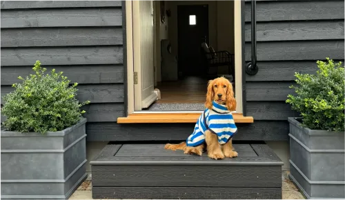 There’s no approach like the one you’ll take to The Pavilion. It sits at the end of a drive, with a meadow in front and a pine forest soaring up at its back. Right at the edge of the Norfolk/Suffolk border, the cabin was once a cricket pavilion but now lives out its days creating a relaxing space to either venture out from and explore the countryside, or kick back in for some downtime. Start the morning with a coffee at the table on the porch, whilst the dog happily circles the cabin and stretches their legs. You can plan the day ahead, whether that’s heading out to the coast, or to Norwich for some dog-friendly days out. Closer to home there are trails to follow, and nature reserves to adventure in with the hound, but whatever you end up doing, you’ll spend nightfall looking up at the stars around a crackling firepit!