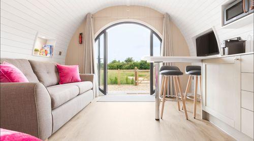 Surrounded by greenery in a field, Pear Tree Pod is one of three pods on the Dux Farm site, where you can spend a few days relaxing just a short drive away from the Cornish coastline. With 23 acres to explore on a circular walk around the site, you and the dog can spend an easy morning strolling straight from the door to stretch the legs! Nearby, you can find a whole host of dog-friendly beaches for mad dashes across the sand, and a number of market towns with classic pubs for lunches out with the hound. Pampering is on the cards for the two and four-legged, with a dog wash station for the little one and massages available to book in the treatment room for yourself. Then the end of the day is an easy choice, with a spell around the firepit, finished off with a dip in the outdoor bath!