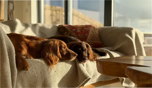 The garden is enclosed and is a great size for dogs. There are also enclosed fields on site, and trails from the door into the forest. You're also spoilt with a very generous goodie bag (for both humans and dogs), and the dogs were given a towel, bowl, ball, and treats.