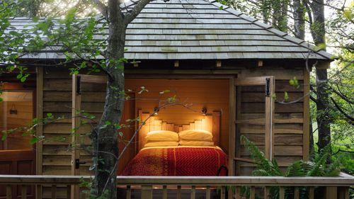 Hidden away from the world, this treehouse has bathing and cooking options indoors and out, and more style than you know what to do with
